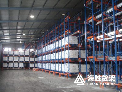 穿梭車貨架在傳統(tǒng)的貫通貨架的基礎(chǔ)上增加導(dǎo)軌和穿梭車,智能化管理,穿梭車在貨架上來回穿梭存貨或者取貨,而叉車只需在貨架的兩端作業(yè)取貨,這不僅省去了貨架間的叉車通道,充分利用倉庫的有限空間,而且也省去大量人力的作業(yè),使得作業(yè)的效率更加提高。